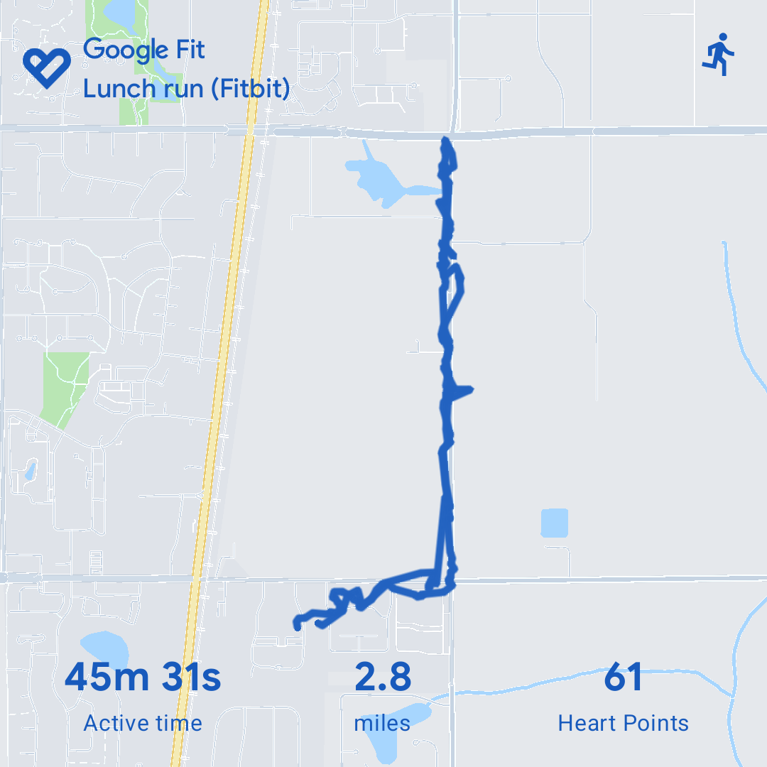 I had decided to do a different, dog-free run, but then at the last minute, Ashley seemed to really want to come along, so I did this run instead, and it was great. Not as far or as fast as I’d have run by myself, but great.